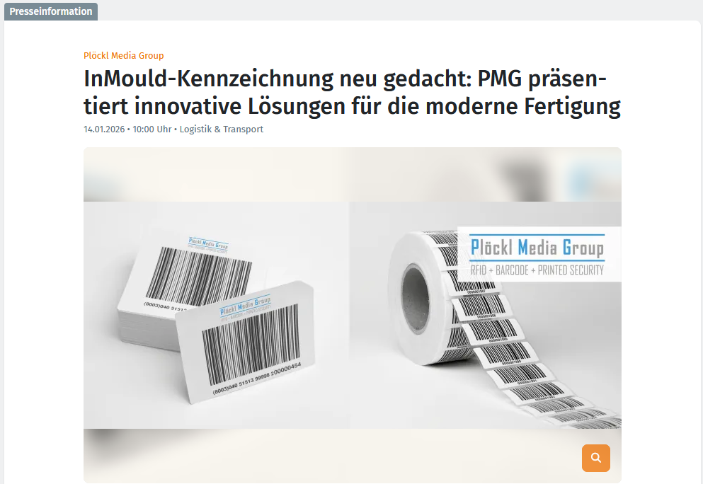 Die Plöckl Media Group ist ein modernes, innovatives und leistungsstarkes Unternehmen. Als Spezialanbieter von RFID, Sicherheitssiegeln und Barcodeetiketten sind wir führender Lieferant für Hersteller, Logistik- und Dienstleistungsunternehmen - weltweit!